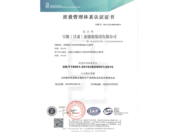 宝能(甘肃)新能源集团公司于2022年09月由江苏盈丰电力装备股份有限公司与江苏安能建设装备集团公司重组成立合资公司,宝能新能源集团前身是甘肃远航金属涂装科技公司,是酒泉玉门市政府招商引资的新能源装备企业,公司位于玉门市经济开发区振兴大道9号,总投资50000万元,占地约150亩,一期投资30000万元,建设办公楼及厂房约36000平米,建设8条年生产40万吨太阳能光热支架及风能塔筒金属钢构件制作自动控温热浸锌镀锌生产线,目前已建成自动控温热浸锌镀锌生产大线两条,年产能13万吨,公司在项目建设和设备选购上选用国际国内和最新《国家重点行业清洁生产技术导向目录》推荐使用的低污染、低排放、低水耗、经济高效的清洁生产工艺和先进的生产设备,保证了热浸锌生产工艺的技术要求和环保要求,能够为客户提供更高品质更高标准的镀锌产品。